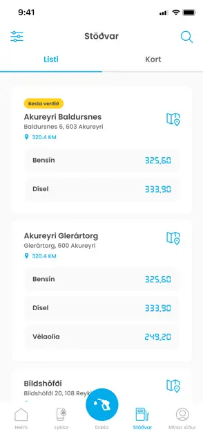 Öskjuhlíð, Sprengisandur, Kópavogsbraut, Búðarkór, Kaplakriki, Akureyri Baldursnes, Skúlagata , Selfoss, Borgarnes, Akureyri Glerártorg